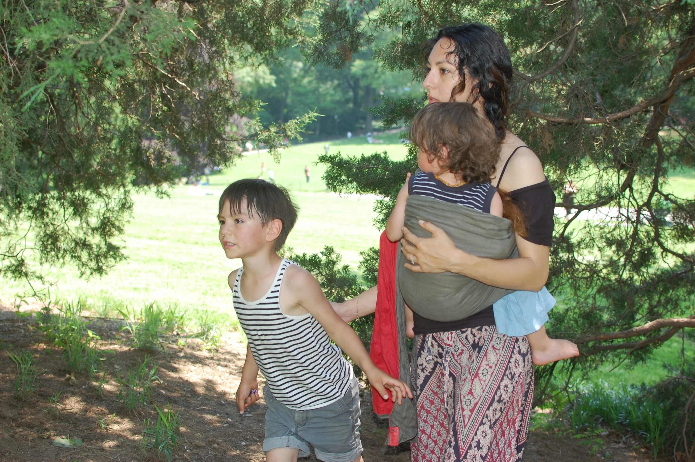 In the mid-morning, the Central Park Forest Nursery assembles slowly, its members moving ahead of and trailing after each other. The families come from all boroughs, all points: Park Slope, Staten Island, Crown Heights, Chelsea, Harlem, Jackson Heights, Sunnyside, Williamsburg. Parents and children carry random assemblages of things in their bags - toys, crayons, books, diapers, a tree guide, sequins, a single sock. Some of us don't know how we even made it out of the house this morning. We all bring weird hippie snacks, and we share our food. Some days, none of us bring much food at all, each counting on eating everyone else's. On those days, we all go a little hungry.